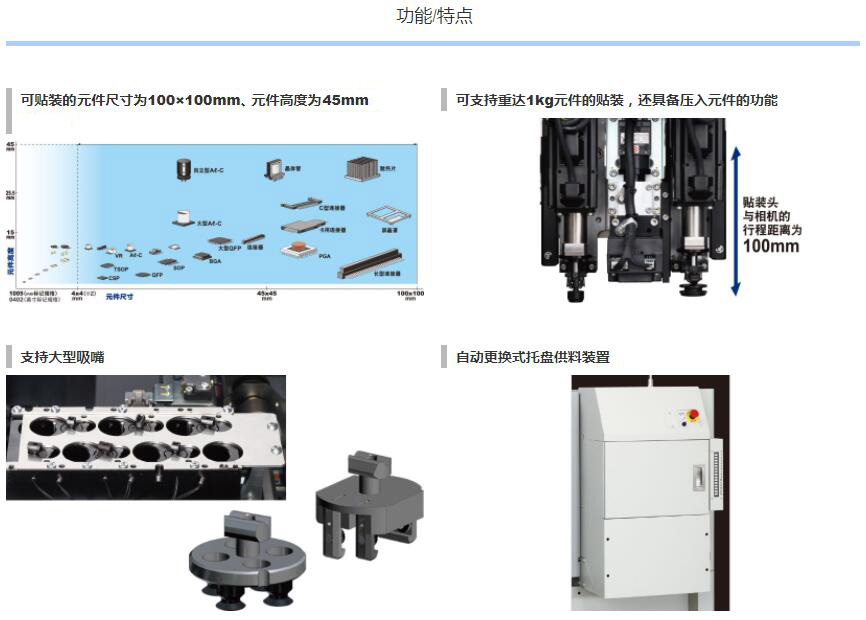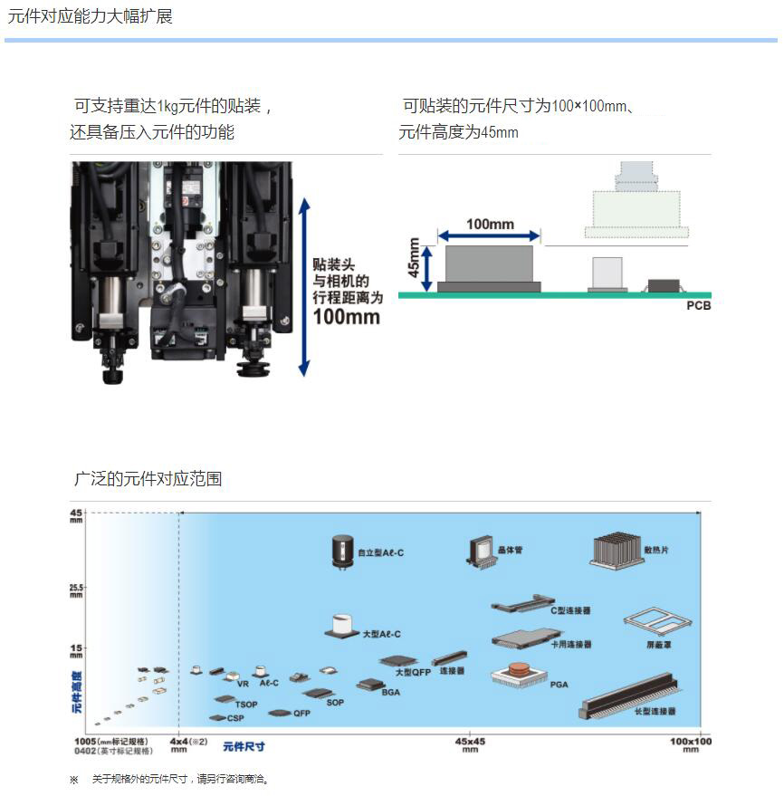 1.可貼裝較大尺寸達(dá)100mm×100mm、高達(dá)45mm的元件。