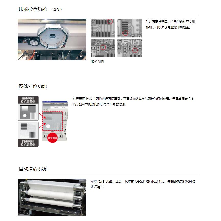1.實(shí)現(xiàn)等同于上級(jí)機(jī)型的印刷質(zhì)量, 支持大型基板, 寬幅網(wǎng)板。